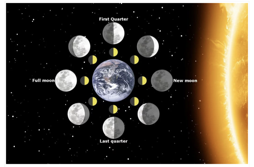 No, it was not a New York Times crossword puzzle that compelled my interest in this noun (I don’t do crossword puzzles), but the poetic loveliness of the names given the full Moons of the year by different tribes[3] of the First Nations[4] of our country. For example, the last full Moon of Spring (in May) is called the “Flower” Moon; the first of summer (in June) the “Strawberry” Moon. [5] But because the poetry had caught my attention, I then found myself wondering about the process by which the Moon becomes “full,”[6] which then led me to understand that it concerns the alignment of the Sun and Earth and Moon in their monthly dance.[7]