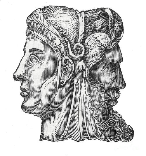 10 An AI summary: “Janus is the ancient Roman god of beginnings, transitions, doorways, and endings, famously depicted with two faces looking in opposite directions, symbolizing past and future, entry and exit. The month of January is named for him, and he presided over war and peace, with the Temple of Janus's gates open in war and closed in peace.”